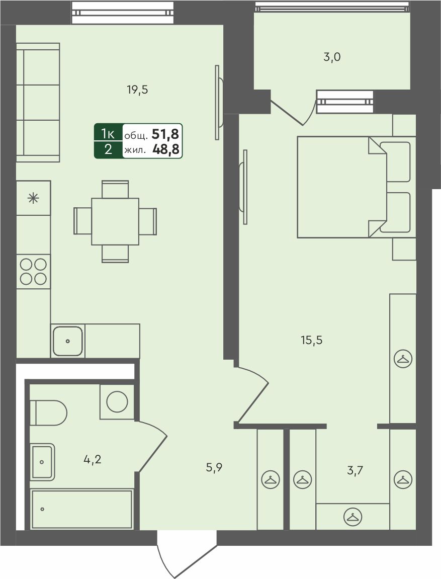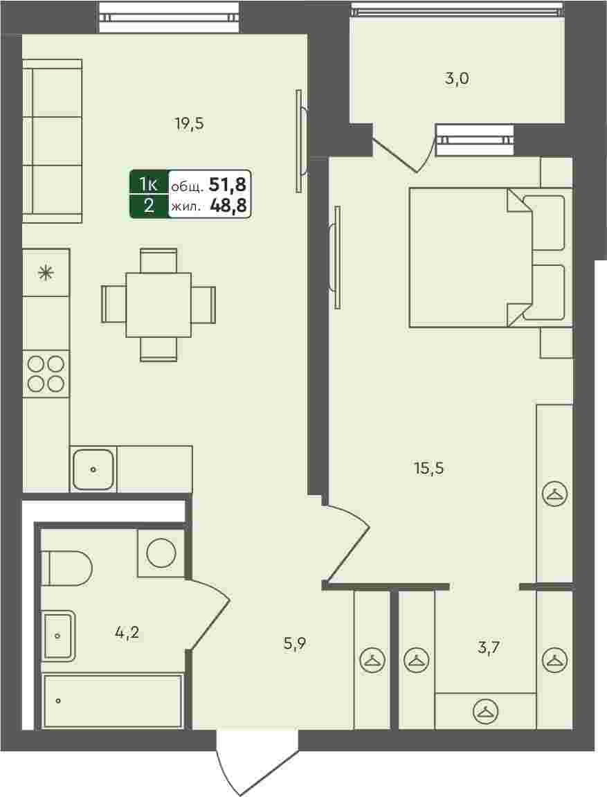- 3-комнатная квартира, 93.6м²